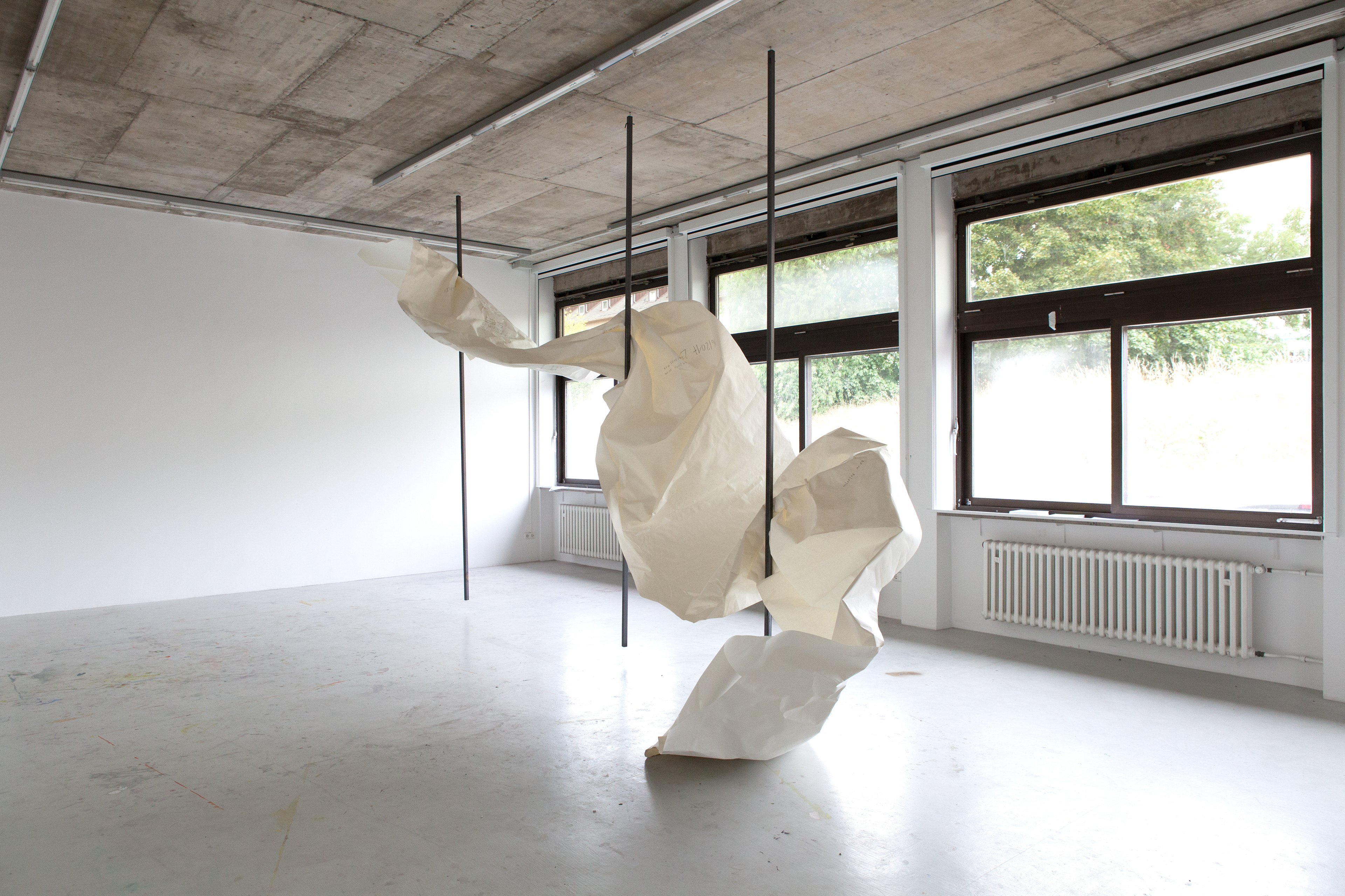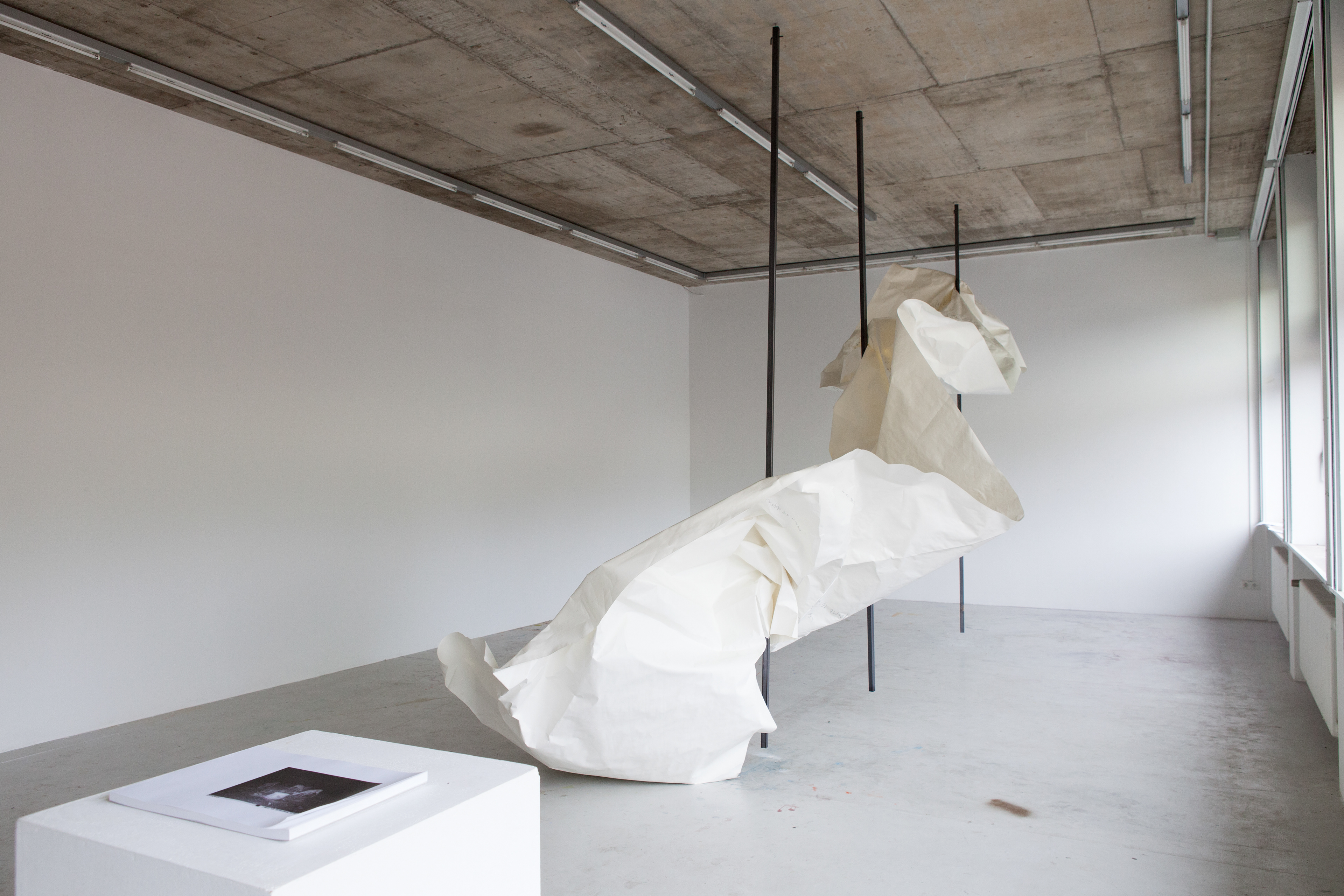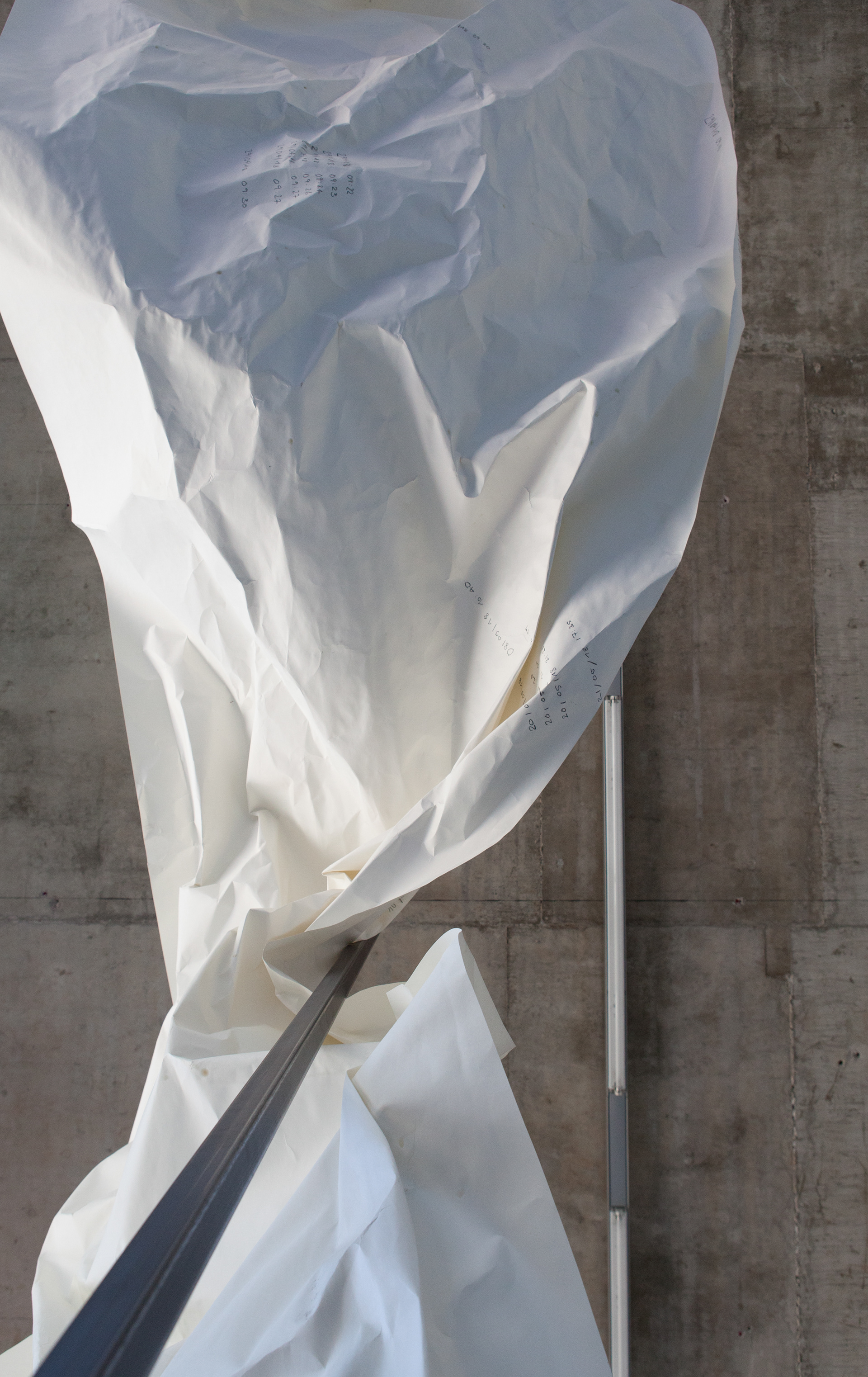 forwarded message, 2018, Papier, Graphit, Stahl, ca. 360 x 700 x 150